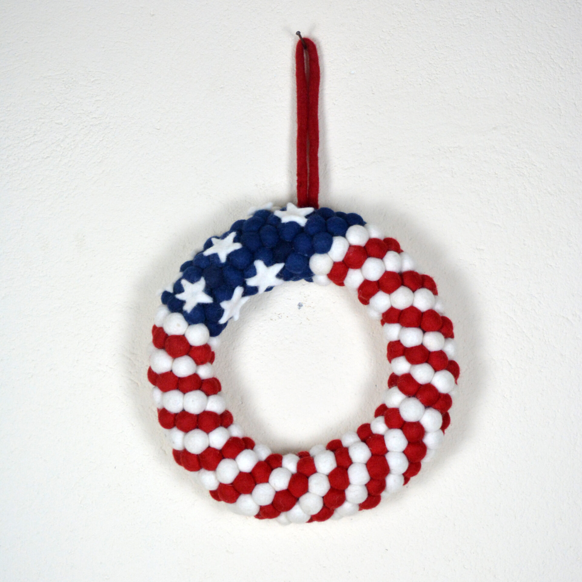 🎆 Handmade | Eco-Friendly | Wool Felt Ball Wreath for Fourth of July Decoration