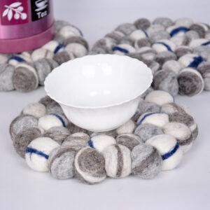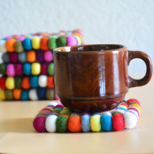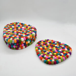Felt Ball Tea Coaster Handcrafted from eco-friendly felt balls, this charming Coaster not only protects your tabletop from heat but also doubles as a delightful decorative accent.