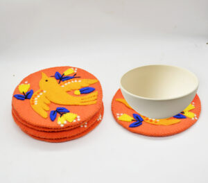 🐦 Handmade | Eco-Friendly | Wool Felt Bird Design Trivet (20 cm)