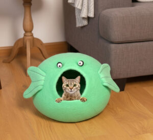 Give your cat a cozy retreat with our woolen felt cat cave. Available in soothing blue and light green, it’s warm, safe and stylish providing a snug hideaway for your feline friend.