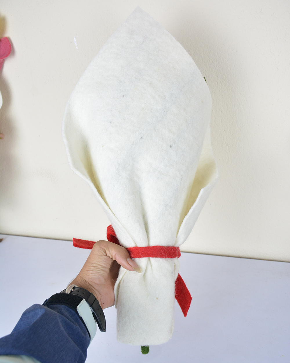 The wool felt used in the production of our handicraft is sturdy, easy maintenance, and long-lasting. Its natural lanolin content and high-density help repel dirt effectively. When cleaning the woolen felt products, it’s best to opt for dry cleaning without using brush or abrasives. For spills or stains, simply use a damp cloth or sponge. For additional information on how to clean the felt handicraft products, please visit the cleaning instructions on our website.