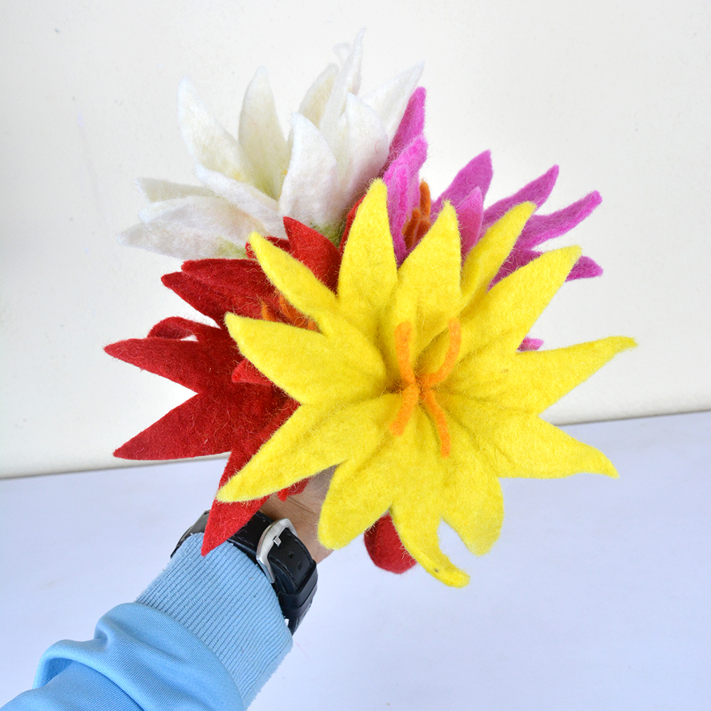 The wool felt used in the production of our handicraft is sturdy, easy maintenance, and long-lasting. Its natural lanolin content and high-density help repel dirt effectively. When cleaning the woolen felt products, it’s best to opt for dry cleaning without using brush or abrasives. For spills or stains, simply use a damp cloth or sponge. For additional information on how to clean the felt handicraft products, please visit the cleaning instructions on our website.