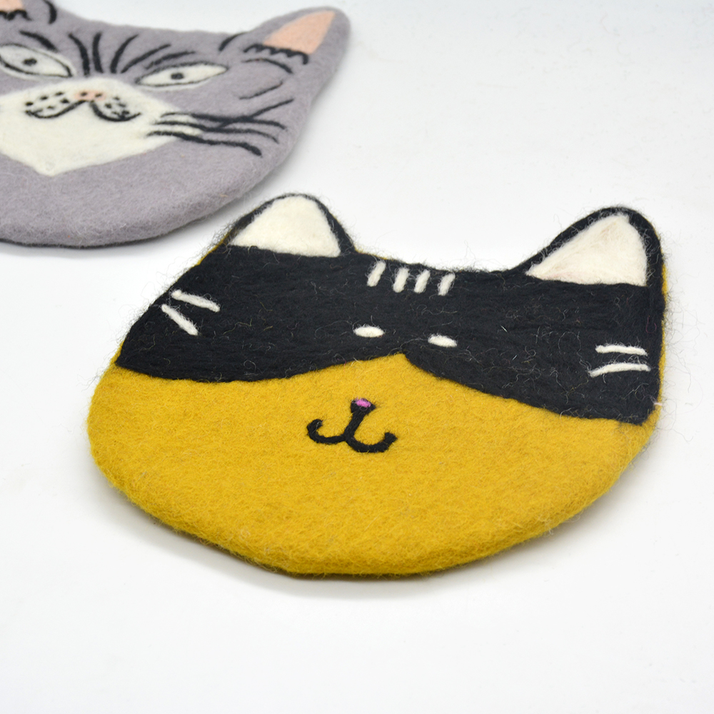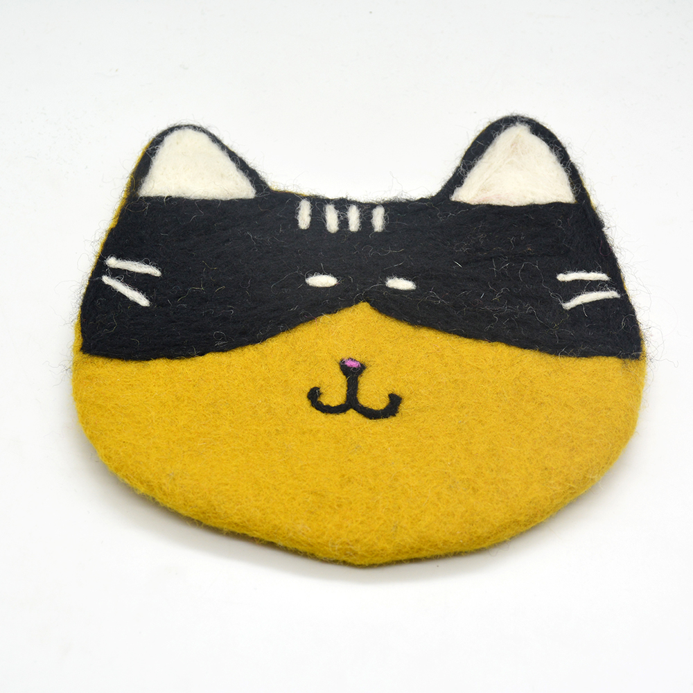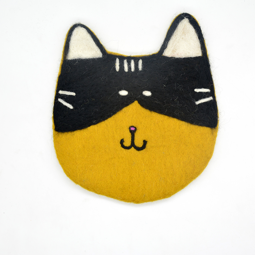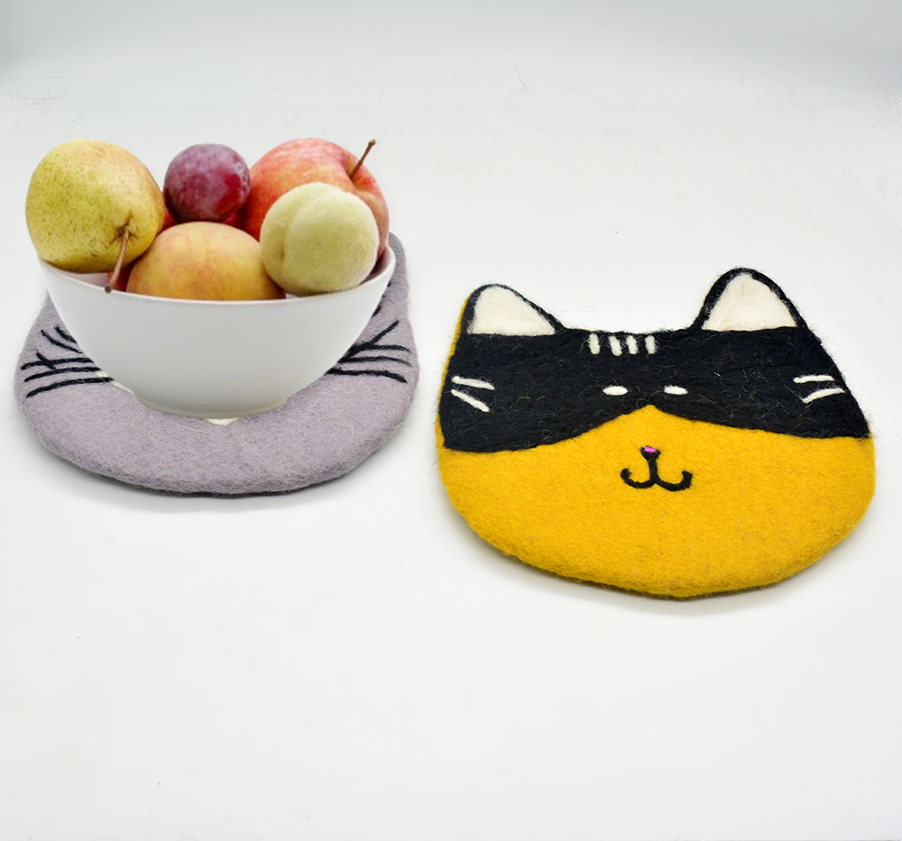 🐱 Handmade | Eco-Friendly | Wool Felt Cat Face Trivet